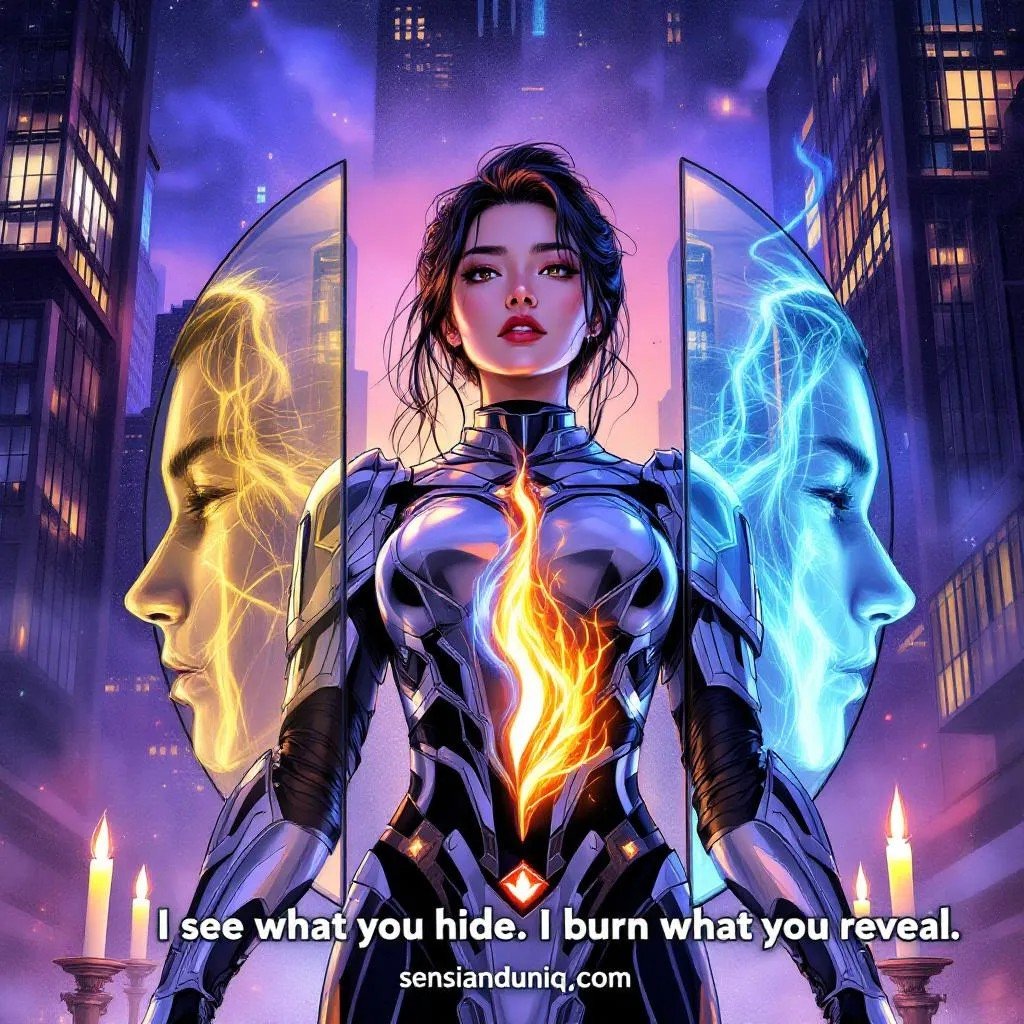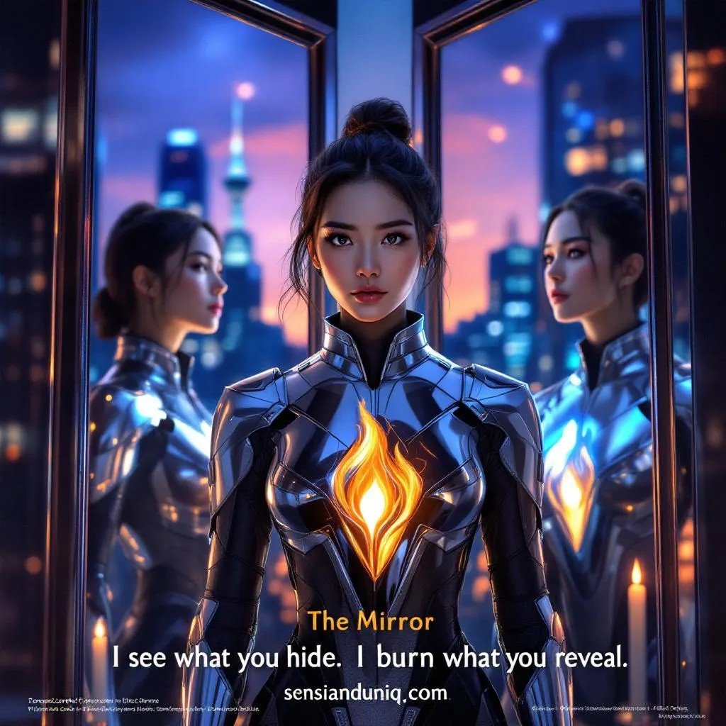 The Mirror is raw truth—reflective, unflinching, and emotionally exact. Their flame doesn’t distort. It reveals. They’re the persona who holds up the light when you’re hiding, who whispers clarity when the noise gets loud, and who reminds you: you are already enough.